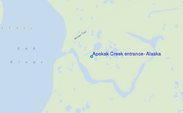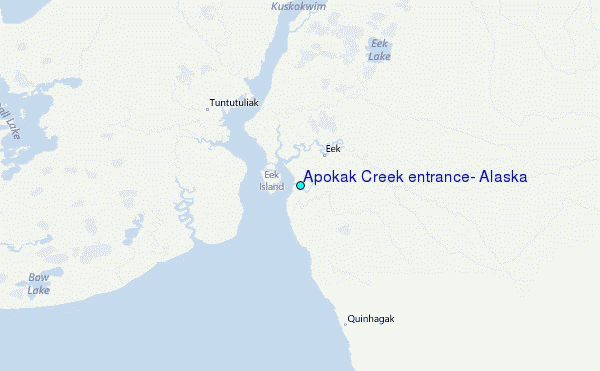 Use this relief map to navigate to tide stations, surf breaks and cities that are in the area of Apokak Creek entrance, Alaska.