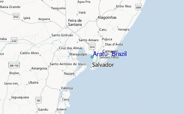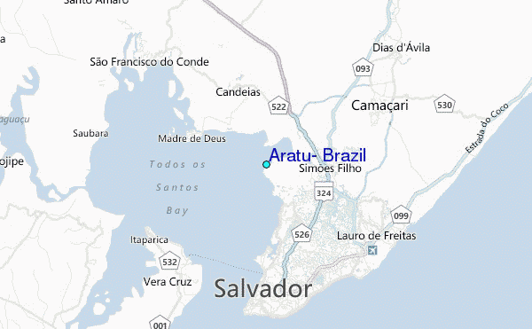 Use this relief map to navigate to tide stations, surf breaks and cities that are in the area of Aratu, Brazil.