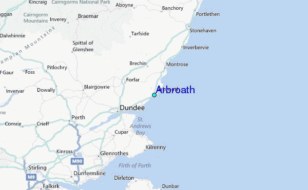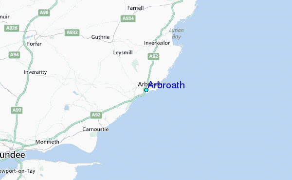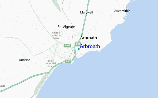 Use this relief map to navigate to tide stations, surf breaks and cities that are in the area of Arbroath.