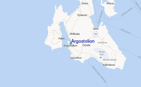 Use this relief map to navigate to tide stations, surf breaks and cities that are in the area of Argostolion.