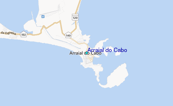 Use this relief map to navigate to tide stations, surf breaks and cities that are in the area of Arraial do Cabo.