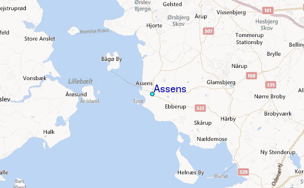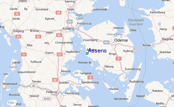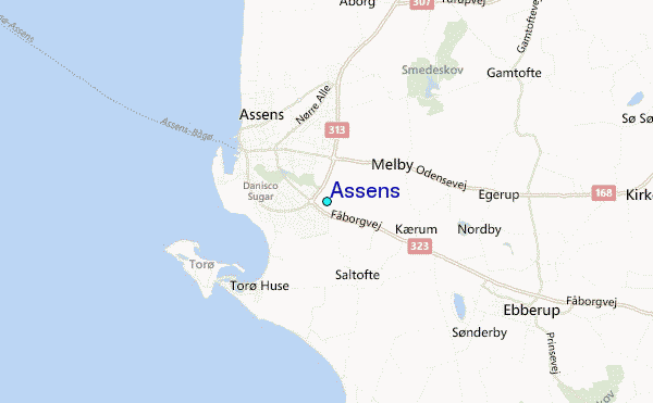 Use this relief map to navigate to tide stations, surf breaks and cities that are in the area of Assens.