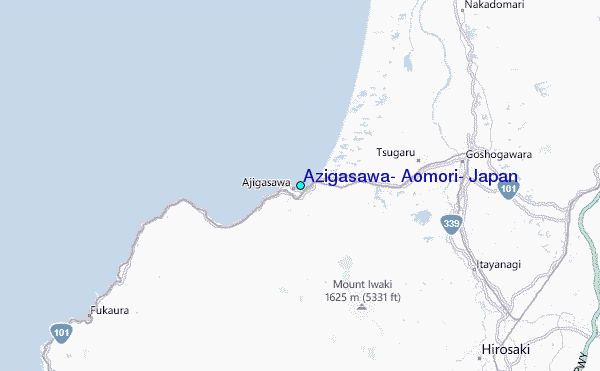 Use this relief map to navigate to tide stations, surf breaks and cities that are in the area of Azigasawa, Aomori, Japan.