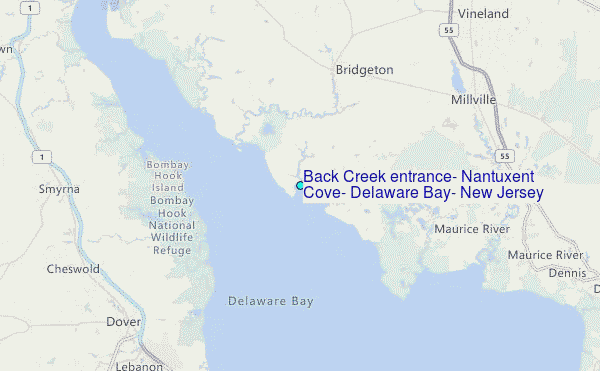 Choose Back Creek entrance, Nantuxent Cove, Delaware Bay, New Jersey Location Map Zoom: