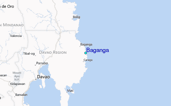 Use this relief map to navigate to tide stations, surf breaks and cities that are in the area of Baganga.