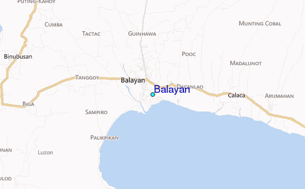 Use this relief map to navigate to tide stations, surf breaks and cities that are in the area of Balayan.