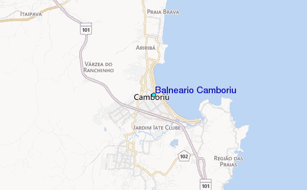 Use this relief map to navigate to tide stations, surf breaks and cities that are in the area of Balneario Camboriu.