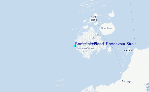 Use this relief map to navigate to tide stations, surf breaks and cities that are in the area of Bampfield Head, Endeavour Strait.
