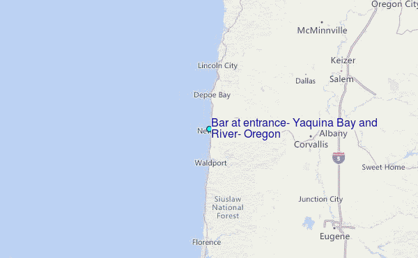 Use this relief map to navigate to tide stations, surf breaks and cities that are in the area of Bar at entrance, Yaquina Bay and River, Oregon.