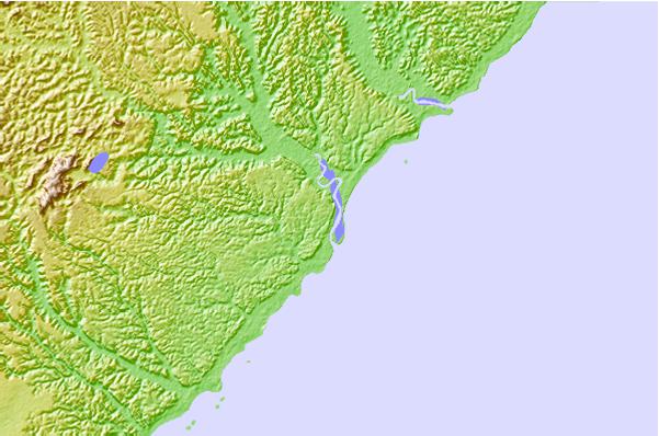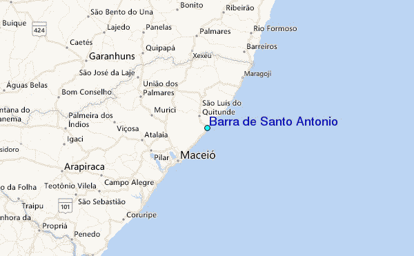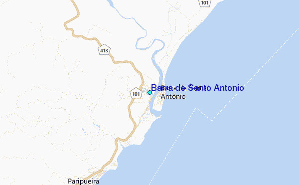 Use this relief map to navigate to tide stations, surf breaks and cities that are in the area of Barra de Santo Antonio.