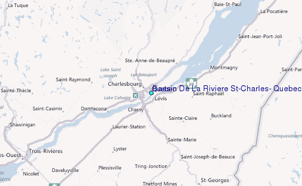 Use this relief map to navigate to tide stations, surf breaks and cities that are in the area of Bassin De La Riviere St-Charles, Quebec.