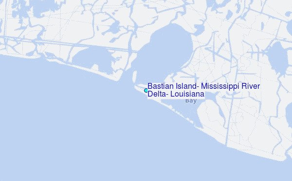 Use this relief map to navigate to tide stations, surf breaks and cities that are in the area of Bastian Island, Mississippi River Delta, Louisiana.