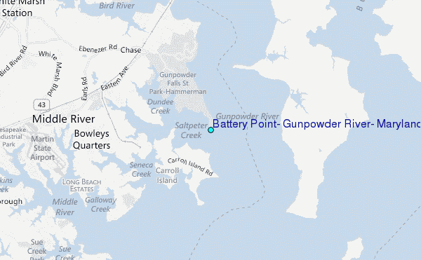 Other Nearby Locations' tide tables and tide charts to Battery Point, Gunpowder River, Maryland: