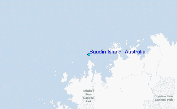 Use this relief map to navigate to tide stations, surf breaks and cities that are in the area of Baudin Island, Australia.