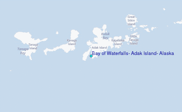 Use this relief map to navigate to tide stations, surf breaks and cities that are in the area of Bay of Waterfalls, Adak Island, Alaska.