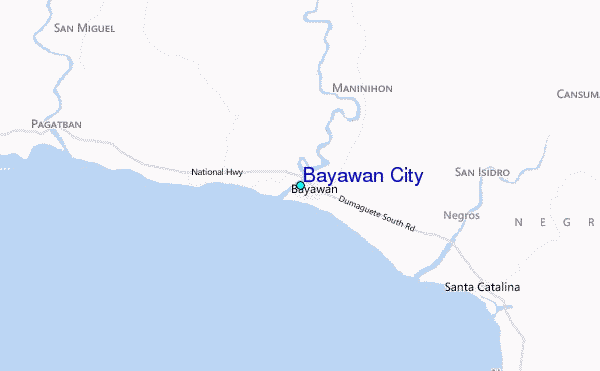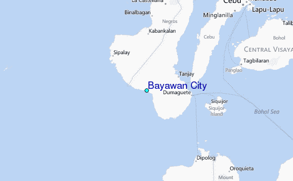 Use this relief map to navigate to tide stations, surf breaks and cities that are in the area of Bayawan City.