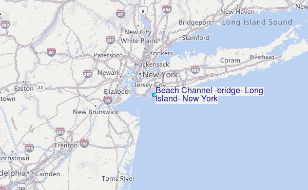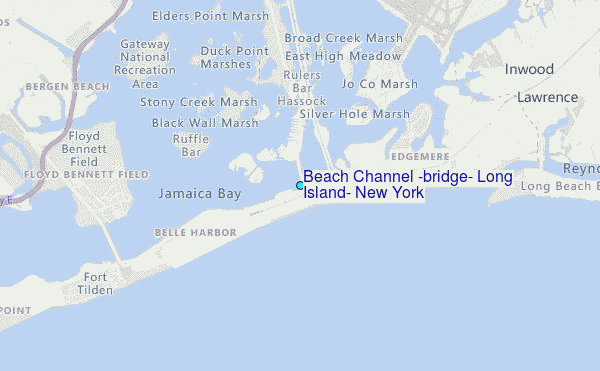 Use this relief map to navigate to tide stations, surf breaks and cities that are in the area of Beach Channel (bridge), Long Island, New York.