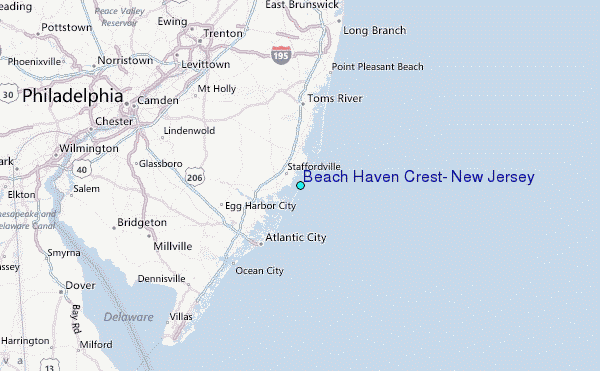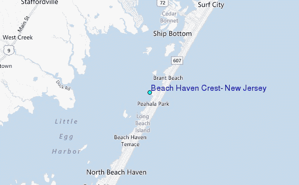 Use this relief map to navigate to tide stations, surf breaks and cities that are in the area of Beach Haven Crest, New Jersey.