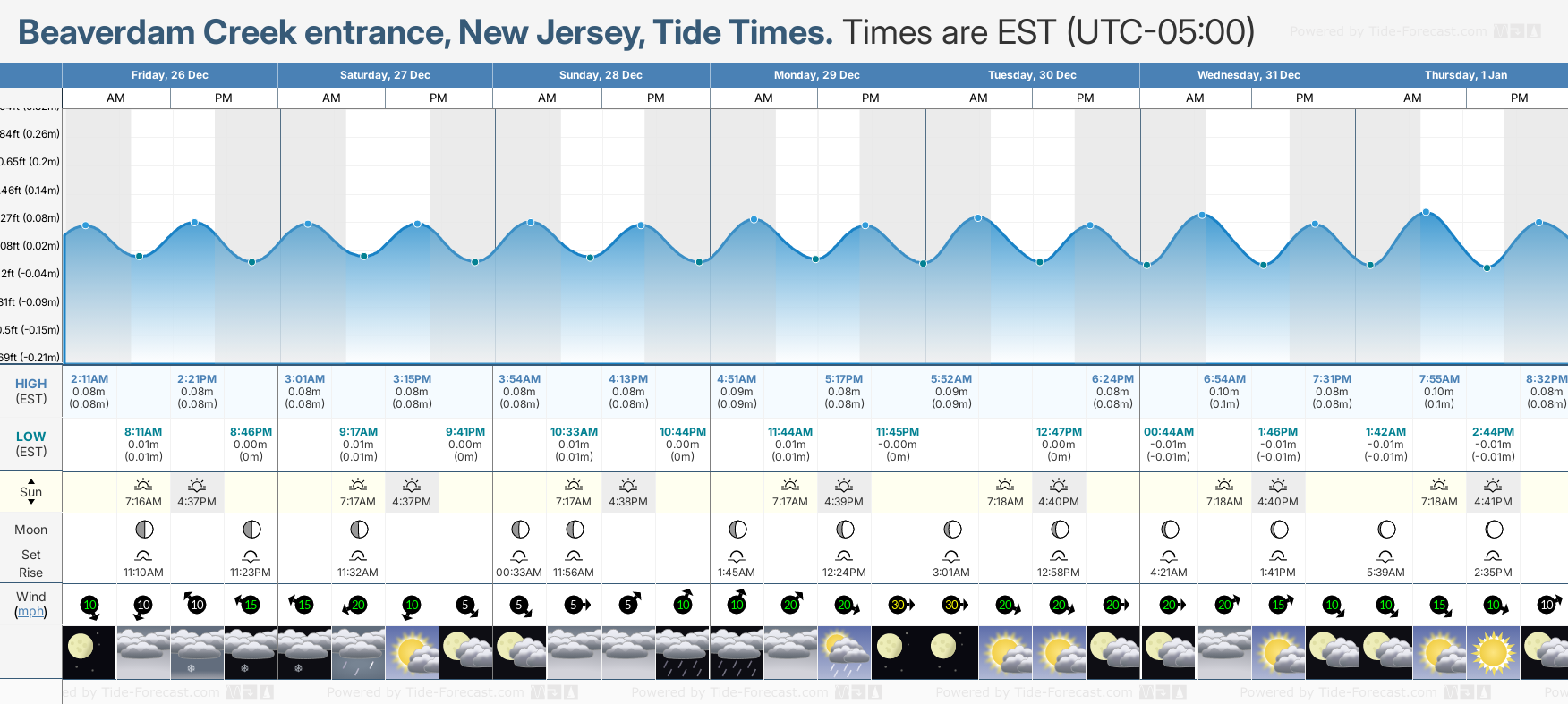 NOTE: Use of this site for Beaverdam Creek entrance, New Jersey tide times is subject to our terms.