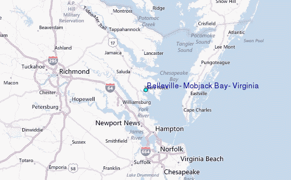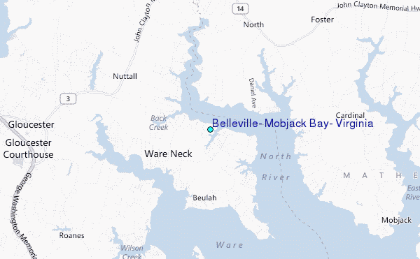 Use this relief map to navigate to tide stations, surf breaks and cities that are in the area of Belleville, Mobjack Bay, Virginia.