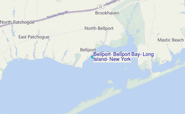 Use this relief map to navigate to tide stations, surf breaks and cities that are in the area of Bellport, Bellport Bay, Long Island, New York.