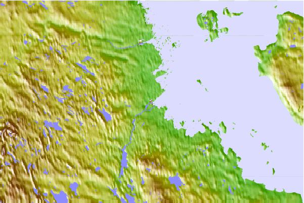 Use this relief map to navigate to tide stations, surf breaks and cities that are in the area of Belomorsk.