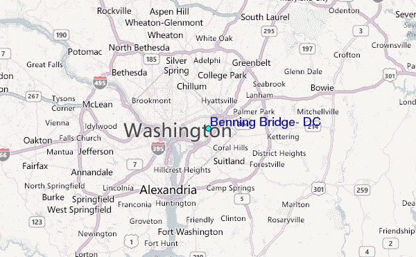 Use this relief map to navigate to tide stations, surf breaks and cities that are in the area of Benning Bridge, DC.