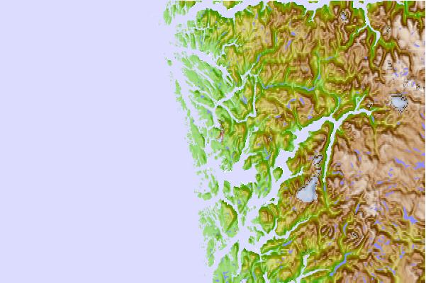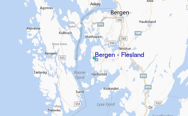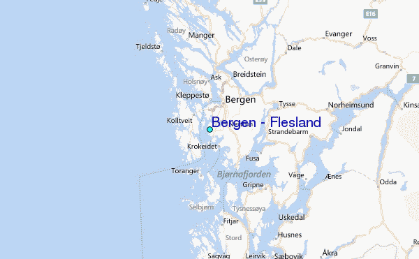 Use this relief map to navigate to tide stations, surf breaks and cities that are in the area of Bergen / Flesland.