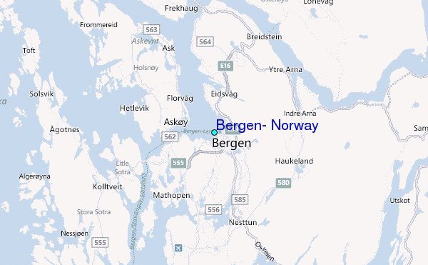 Use this relief map to navigate to tide stations, surf breaks and cities that are in the area of Bergen, Norway.