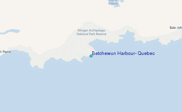 Use this relief map to navigate to tide stations, surf breaks and cities that are in the area of Betchewun Harbour, Quebec.