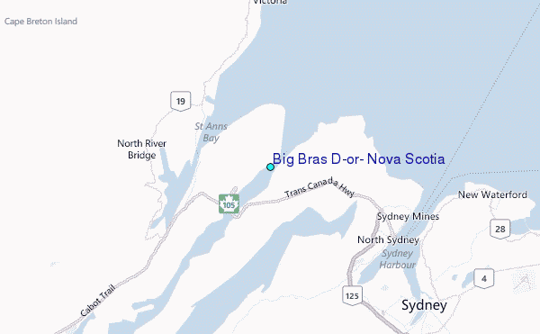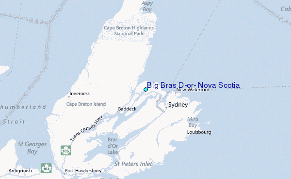 Other Nearby Locations' tide tables and tide charts to Big Bras D'or, Nova Scotia: