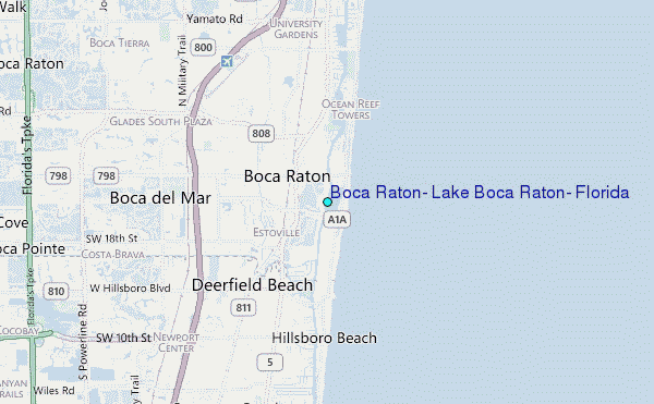Use this relief map to navigate to tide stations, surf breaks and cities that are in the area of Boca Raton, Lake Boca Raton, Florida.