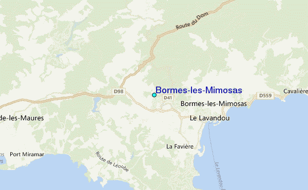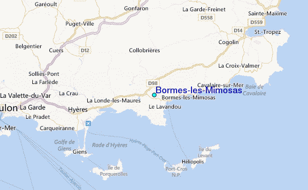 Use this relief map to navigate to tide stations, surf breaks and cities that are in the area of Bormes-les-Mimosas.