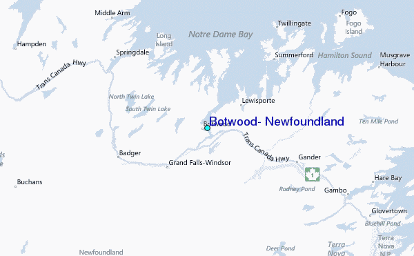 Other Nearby Locations' tide tables and tide charts to Botwood, Newfoundland: