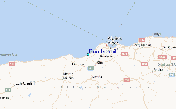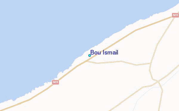 Use this relief map to navigate to tide stations, surf breaks and cities that are in the area of Bou Ismail.