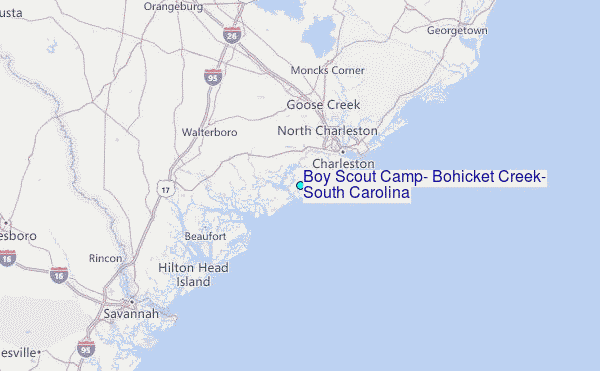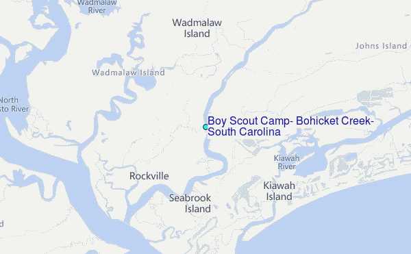 Use this relief map to navigate to tide stations, surf breaks and cities that are in the area of Boy Scout Camp, Bohicket Creek, South Carolina.