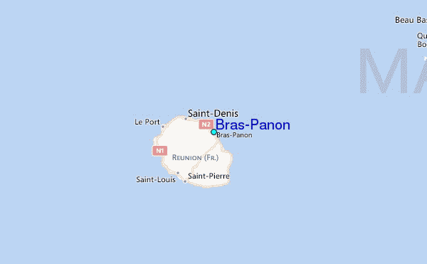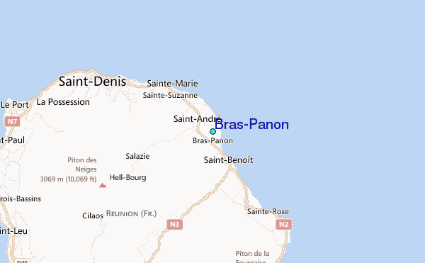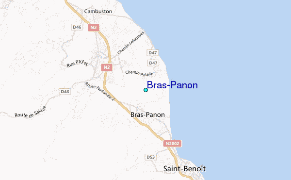 Use this relief map to navigate to tide stations, surf breaks and cities that are in the area of Bras-Panon.