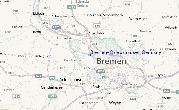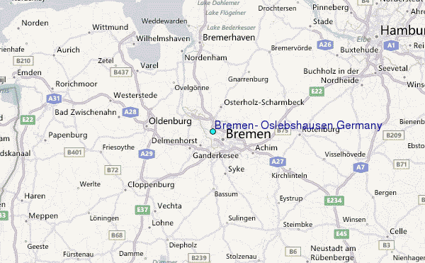 Use this relief map to navigate to tide stations, surf breaks and cities that are in the area of Bremen, Oslebshausen Germany.