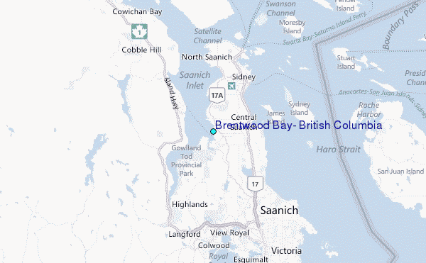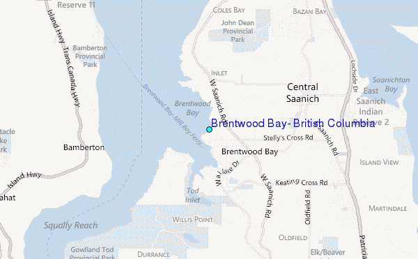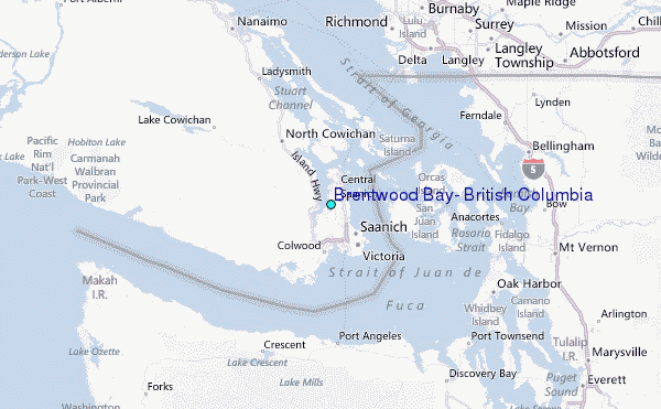 Use this relief map to navigate to tide stations, surf breaks and cities that are in the area of Brentwood Bay, British Columbia.