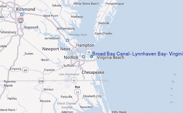 Choose Broad Bay Canal, Lynnhaven Bay, Virginia Location Map Zoom: