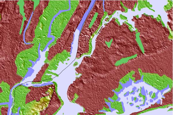 Use this relief map to navigate to tide stations, surf breaks and cities that are in the area of Brooklyn Bridge, East River, New York.
