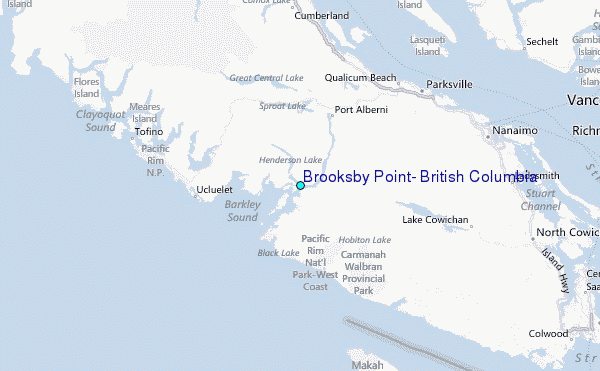 Use this relief map to navigate to tide stations, surf breaks and cities that are in the area of Brooksby Point, British Columbia.