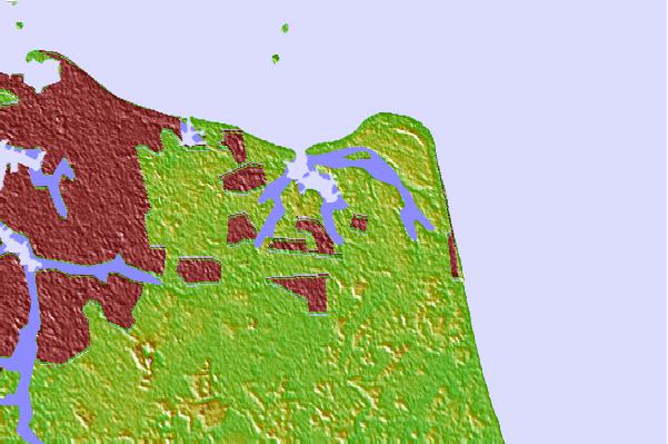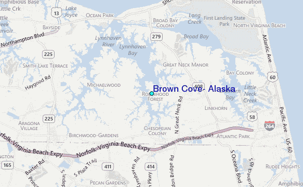 Use this relief map to navigate to tide stations, surf breaks and cities that are in the area of Brown Cove, Alaska.