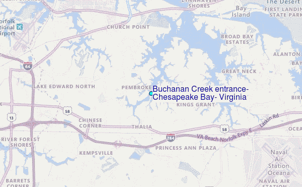 Choose Buchanan Creek entrance, Chesapeake Bay, Virginia Location Map Zoom: