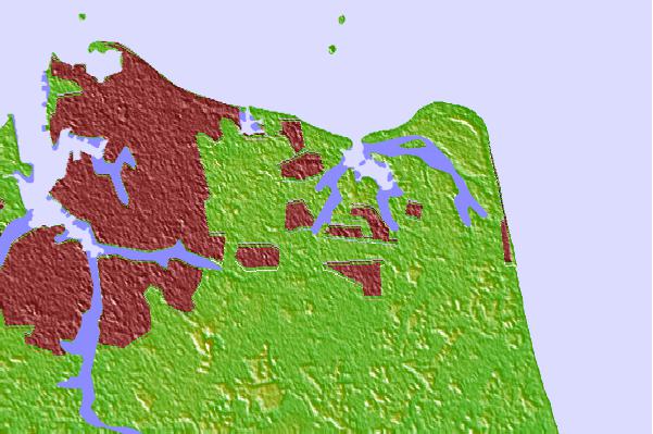 Use this relief map to navigate to tide stations, surf breaks and cities that are in the area of Buchanan Creek entrance, Chesapeake Bay, Virginia.