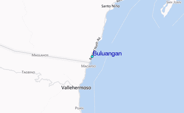 Use this relief map to navigate to tide stations, surf breaks and cities that are in the area of Buluangan.