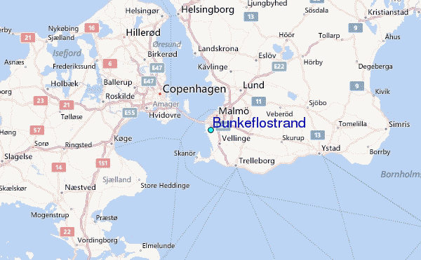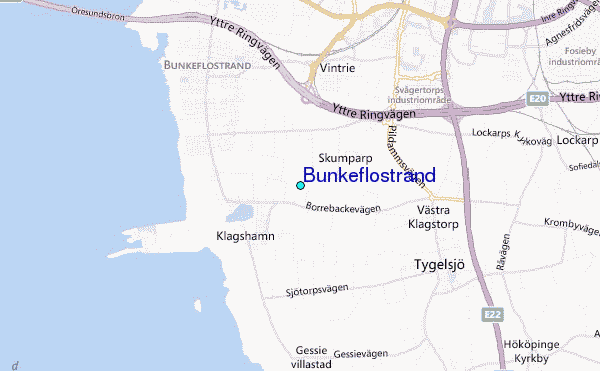 Use this relief map to navigate to tide stations, surf breaks and cities that are in the area of Bunkeflostrand.
