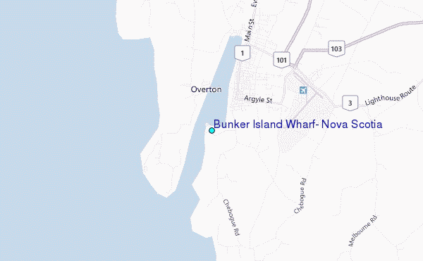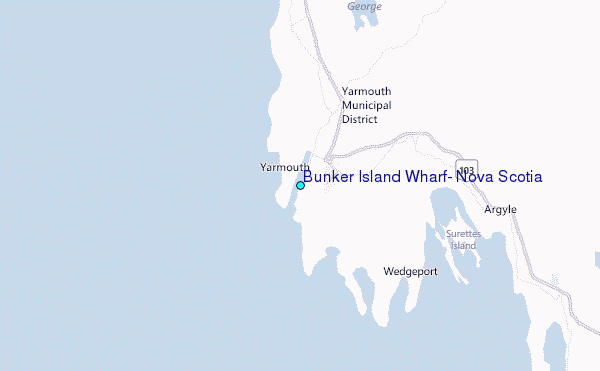 Use this relief map to navigate to tide stations, surf breaks and cities that are in the area of Bunker Island Wharf, Nova Scotia.