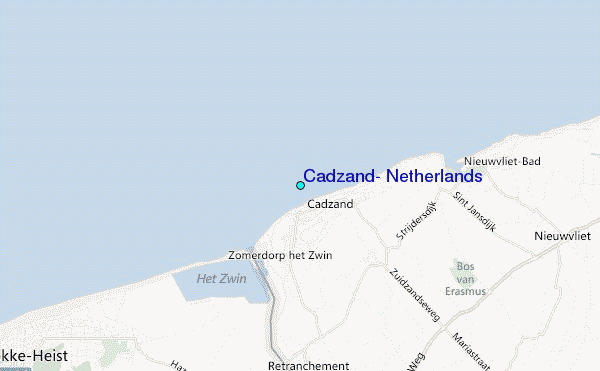 Use this relief map to navigate to tide stations, surf breaks and cities that are in the area of Cadzand, Netherlands.