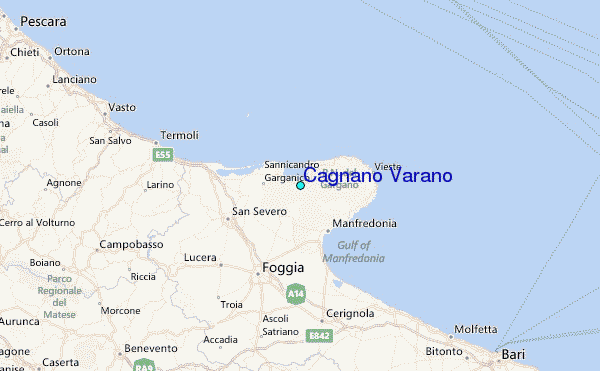 Use this relief map to navigate to tide stations, surf breaks and cities that are in the area of Cagnano Varano.